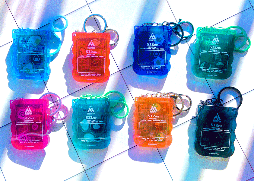記憶カードに新しいシリーズが登場!美味しい食べ物の記憶が詰まったメモリーカード風シャカシャカアクキー!改良版により透け感が更に綺麗に!