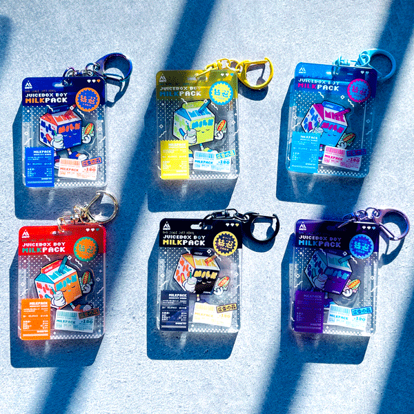 パッケージ風のシャカシャカアクキーシリーズにジュースボックスボーイ ミルクパックの新デザインが登場!